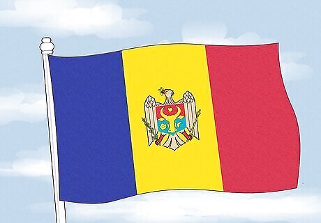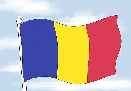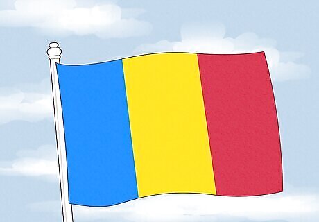 The Romanian flag is a vertical tricolor with three equal stripes. The leftmost stripe is blue, the middle one is yellow, and the rightmost one is red, just like Chad. This design was influenced by the local flags of Moldavia and Wallachia, the two principalities that united to form the country of Romania. While no official interpretations of the flag colors exist, some claim that the blue represents the sky, the yellow represents the fertile land, and the red represents the bravery of those who’ve fought for Romania’s freedom.