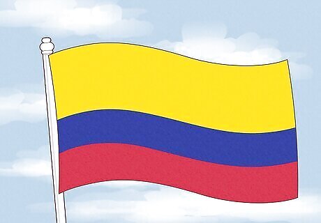 The Colombian flag is made up of three horizontal stripes. The bottom stripe is red and the middle stripe is blue. The top stripe is yellow, and is also twice the height of the other two stripes, taking up half of the flag’s total height. Colombia’s flag design is similar to that of Ecuador and Venezuela, given that the three countries were once united as the former state of Gran Colombia. The colors of yellow, blue, and red, respectively, officially symbolize the sun and the country’s riches, the Colombian skies and seas, and the blood spilled for Colombia’s independence.