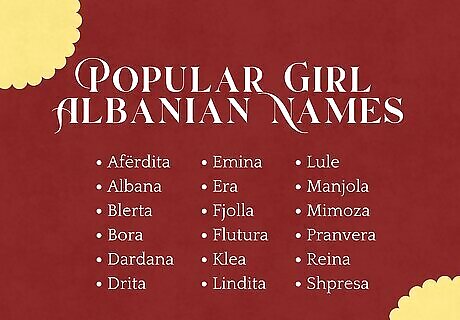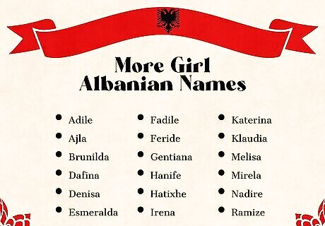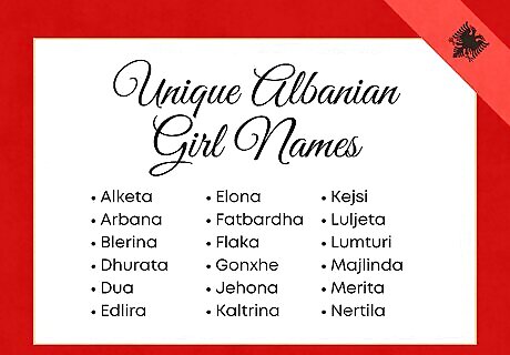 Select a unique Albanian female name, like Anxhela, Dua, or Vesa. You might not hear the following options often, but they definitely sound beautiful. Here are rare and unique female names and their meanings: Alketa - Albanian for “strong” or “mighty.” Anxhela - Albanian form of the name Angela, which means “messenger of God.” Arbana - Directly linked to the word “Albanian.” Ardita - Albanian for “golden day.” Blerina - Albanian for “greenery,” “blossom,” or “verdure.” Dhurata - Albanian for “the gift” or “present.” Dua - Albanian for “love” or “want.” Edlira - Albanian for “free” or “to be free.” Egzona - Albanian for “one who brings joy” or “one who is delighted.” Elona - Albanian for “light” or “blessed one.” Etleva - Albanian for “morning star” or “star.” Fatbardha - Albanian for “white luck” or “pure luck.” Fatmire - Albanian for “good fortune,” “lucky,” or “happy.” Flaka - Albanian for “flame.” Gonxhe - Albanian for “flower bud” or “blossom.” Jehona - Albanian for “echo” or “reverberation.” Kaltrina - Albanian for “blue” or “azure.” Kejsi - Albanian form of the Irish name Casey, which means “vigilant” or “watchful.” Luljeta - Albanian for “flower of life.” Lumturi - Albanian for “happiness,” “good fortune,” or “felicity.” Majlinda - Albanian for “born in May.” Manushaqe - Albanian for “violet.” Merita - Albanian for “merit,” “worth,” or “deservingness.” Nertila - Albanian for “myrtle.” Sanije - Albanian for “healthy.” Shqipe - Albanian for “eagle.” Valdete - Albanian for “sea wave” or “wave of the sea.” Valmira - Albanian for “good wave” or “wonderful wave.” Vesa - Albanian for “dew.” Vjollca - Albanian for “violet.” Xhemile - Albanian for “beautiful” or “lovely.” Xhesika - Albanian form of the Hebrew name Jessica, which means “to behold” or “to see.” Yllka - Albanian for “star.”