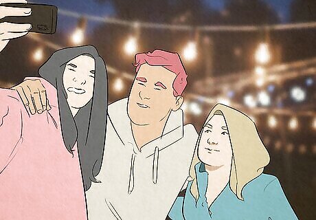 Group photos To look good in a group photo, think about where you’re positioned in the group. If you’re on the end, for example, find something to do with your outside arm or hand to avoid looking awkward (a hand in the pocket is always a good go-to). If you’re in the middle, you could cross your arms or place them around the shoulders or waists of the people next to you (if you’re all comfortable with each other), then focus on delivering a natural smile with your chin forward. Of course, you’ll have to go with the flow if the group decides to go with a certain pose or theme. As long as you’re relaxed, look comfortable, and are having fun, the photo will turn out great!