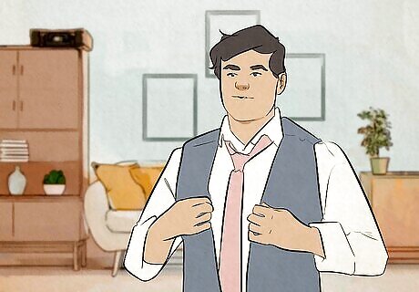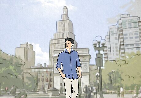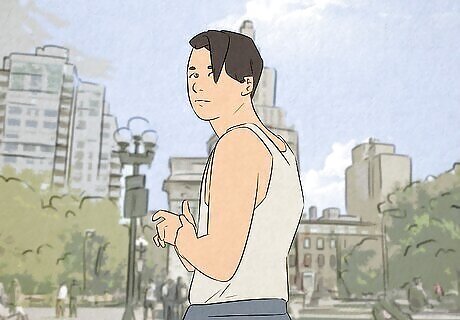 Adjusting your wardrobe Pretend to make a small adjustment to your outfit, like reaching up to flatten your collar or “tightening” your watch. These movements make it look like you’re mid-action, giving the photo a cool, almost-candid feel. The adjustments you make “depend on what you’re wearing,” Halvorson explains. “You can put your hands to your cufflinks,” for example, but “if you're in a T-shirt and beach shorts, there's really not as much you can do.”