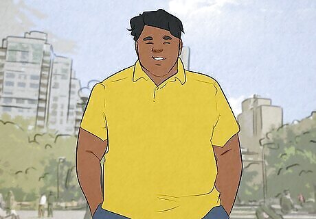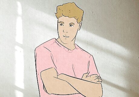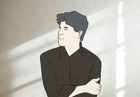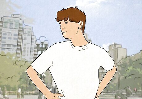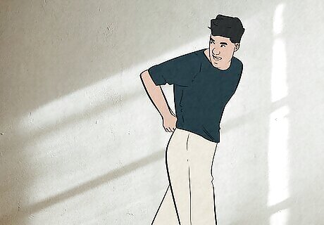 Stand with your feet apart and your toes pointing out. If you’re standing for your photo, keep your feet about shoulder-width apart and make sure that your toes aren’t pointing inward to give yourself a sturdy, “manly” foundation to stand on. It helps to picture the letter “A” when you’re getting ready. A narrower stance with your toes more inward can make your posture appear curvier or more feminine (which is not inherently a bad thing—do whatever makes you feel confident and happy!).