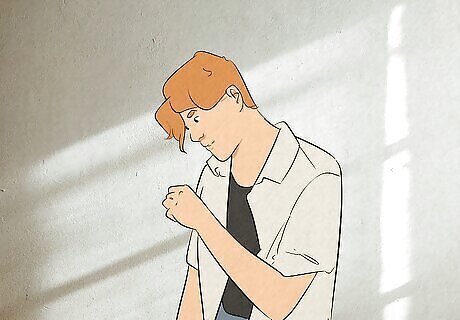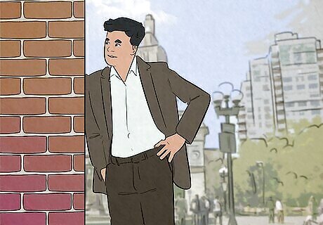 Leaning against a wall Leaning against a wall or other object is a great way to find a relaxed and expressive pose. Try putting your back against the wall for a more intense or direct vibe, or lean on your shoulder or side instead for a more casual or playful look. Combine this with crossed arms, hands in your pockets, or any other hand/arm pose so your arms aren’t hanging down awkwardly.