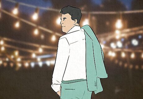 Jacket over your shoulder This is another classic guy pose that looks fashionable and editorial. Use one hand to drape a jacket or sweater over your shoulder on the same side. Then, the rest is up to you. You can stand, sit, lean against a wall, look into the camera, glance over your shoulder—the options for this versatile pose are nearly limitless! If you want the jacket to billow behind you, try walking toward or in front of the camera to add some movement to the photo.