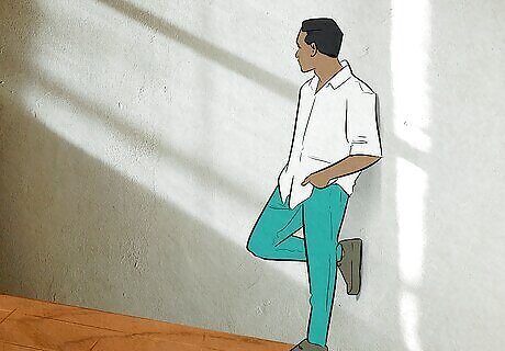 One leg up Stand with your back leaning against a wall, then put one foot up on the wall for a cool and casual pose. Feel free to experiment with backgrounds, too. Pillars, rocky bluffs, doorways, or any tall and sturdy object can add even more interest to the photo.