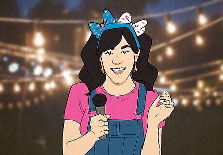 Want to model your look after the Princess of Pop? Channel Britney’s iconic schoolgirl outfit from the “Baby One More Time” music video with a white button-down and a sports bra or a cropped tank top. Tie the ends of the white button-down around your waist so that the knot sits right below your bra or tank top. Then, add a black mini skirt, black knee-high socks or tights, and a grey cardigan to your outfit. Put your hair in braided pigtails (or wear a similar wig). If possible, wear black Mary Jane shoes and tie pink ribbons and pom-poms around your braids! What You’ll Need: White button-down Sports bra or cropped tank top Black mini skirt Black knee-high socks or tights Grey cardigan Braided pigtail wig (optional) Black Mary Jane shoes (optional) Pink ribbons (optional) Pink pom-poms (optional)