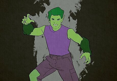 Transform into this Teen Titans character with some simple clothing items and costume makeup! Wear a black and purple outfit, instructs cosplayer Naiquan Midyett, then paint your face and hair green with face makeup and spray-on dye. To fake Beast Boy’s black-and-purple suit, wear purple shorts and a tank top, then wear black leggings and a black long-sleeve shirt underneath. If you can, get some elf ears, silver gloves, and a silver belt to complete the look! What You’ll Need: Purple tank top Purple shorts Black leggings Black long-sleeve shirt Green face makeup Temporary green spray-on hair dye Costume elf ears (optional) Silver gloves (optional) Silver belt (optional)