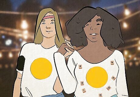You could do either of these costumes as a solo look, or combine them for a punny couples’ costume! For each costume, wear a white T-shirt and attach a large yellow circle (cut out of fabric or paper) to the front of it. For the “scrabbled egg,” glue some Scrabble letter pieces onto the shirt, as well. For the “runny egg,” wear an athletic headband, some running shoes, and an armband. What You’ll Need: White T-shirt Large yellow fabric or paper circle Scrabble letter pieces (“scrabbled egg”) Athletic headband (“runny egg”) Running shoes (“runny egg”) Armband (“runny egg”)