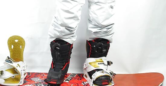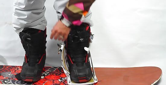 Determine what type of bindings you have. There are 2 common types: strap bindings and speed entry bindings. Strap bindings are the most commonly seen snowboard bindings. They consist of a base for the bottom of your boot and a set of secure synthetic straps (usually 2 straps) that are tightened over the boot to lock it into the base. Speed entry (or convenience entry) bindings look similar to strap bindings, except the back of the boot base (called the “highback”) has a hinge that allows you to slide your foot in quickly. Speed entry bindings are common, but tend to be a bit more expensive than strap bindings. There are other, rarer types of bindings available, but these are not often seen except on high-end boards, particular brands, and really old bindings.
