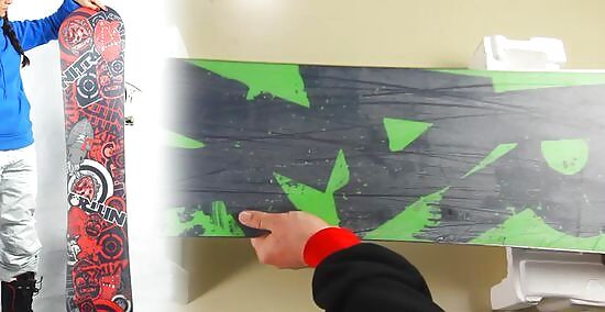 Size the board to your height and weight. Even more important than the type of board you buy is the fit of the board to your body. As a general rule of thumb, your board should come up to about the height of your chin or nose when it’s stood on its end. Any lower may be too short while any taller is probably too long. Each board has a weight range, as well. For example, the same person could use a 153 centimeter (60.2 in) board for learning and for jibbing (riding boxes and rails in the park), 157 centimeter (61.8 in) board for big park jumps and all-mountain use, 160 centimeter (63 in) board for freeride and 166 centimeter (65.4 in) alpine board. Always check the manufacturer's recommended weight range and keep in mind the conditions you will be riding in.