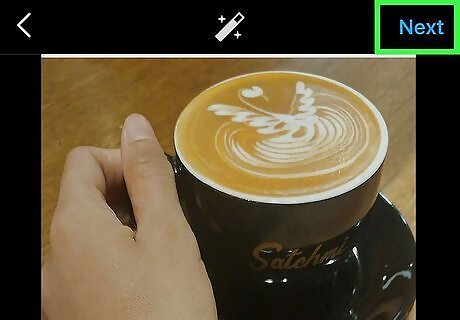 Tap the Next button on the top-right. This will confirm your selection, and take you to the editing page. At this point, you can add filters or make other edits to your image(s) or video(s) before sharing them with your feed.