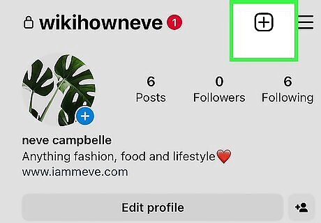 Tap the + at the top-right corner of Instagram. You can find this plus sign button in the top right corner of your screen. This will allow you to create a new post. This works for either a mobile web browser like on a tablet, or in the Android or iPhone mobile app.
