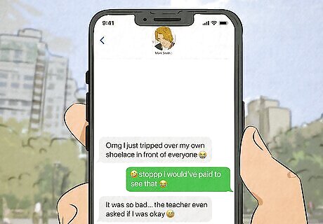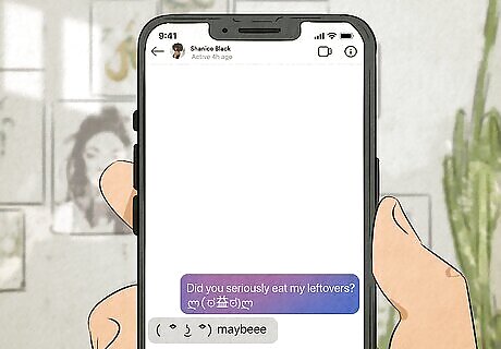 Get creative with funny face emoticons to spruce up your texts. If you want to be extra fun and expressive over text, throw out a funny emoticon! Since they’re not a normal feature across keyboards, it’s sure to surprise the other person. Here are some hilarious options: ¯\_(ツ)_/¯ ( ͡° ͜ʖ ͡°) ಠ_ಠ ლ(ಠ益ಠ)ლ ☉_☉ ¯(°_o)/¯ (゜-゜) (・_・ヾ o_O ᕕ( ᐛ )ᕗ (¬_¬) ( ͡° ʖ̯ ͡°) (▀̿Ĺ̯▀̿ ̿) (ㆆ_ㆆ) ┌(・。・)┘♪ ( ͡????️ ͜ʖ ͡????️) ¯\_༼ •́ ͜ʖ •̀ ༽_/¯ ミ●﹏☉ミ (΄◉◞౪◟◉`) (っ ͡❛ ???? ͡❛)っ ヽ(°〇°)ノ o(╥﹏╥) (⸝⸝⸝-﹏-⸝⸝⸝) =◈︿◈= (づ ̄ ³ ̄)づ (╯°□°)╯︵ ┻━┻ (☞°ヮ°)☞ ☜(°ヮ°☜)