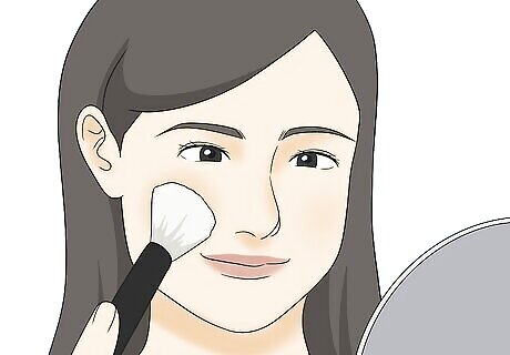 Apply blush on the apples of your cheeks. Applying blush is another great way to soften your face shape and draw attention to your defined cheekbones. To find the apples of your cheeks, smile and grab the rounded, fleshy area of skin. Then, take your favorite blush and use a tapered brush to dab on the product. Sweep a bit of the blush upward to highlight your cheekbones.