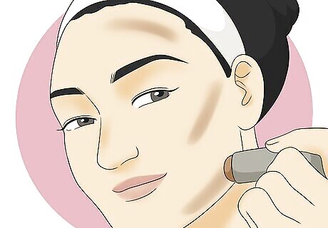 Contour your temples, jawline, and cheekbones. Applying a bit of makeup can help soften your sharp features, giving you a more balanced look. Using a contour or bronzer a few shades darker than your skin tone, apply a small line of product along your temples, the corners of your jaw, and under the curves of your cheekbones. Then, use a brush or damp beauty sponge to blend out the contour so there aren’t any harsh lines.