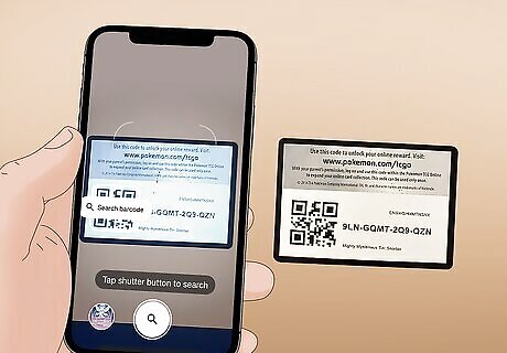 Scan the code cards that come in some card packs. Specially marked Pokémon packs come with an extra card with a code on it that you use to redeem a virtual card in the online game. Simply go to Shop > Redeem in the desktop or app version of the game and enter the code manually. Or, scan the QR code on the card.