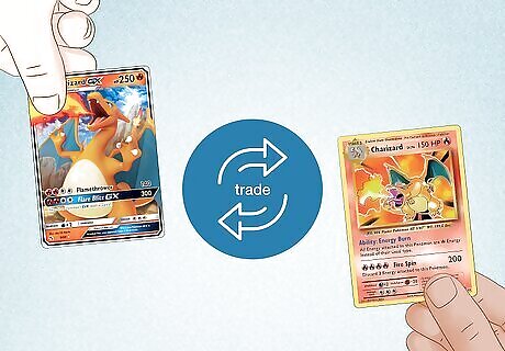Trade cards with other collectors and players. Trading Pokémon cards is a great way to get new cards for free and cultivate your collection—you just have to be ready to part ways with some of your own cards. There are plenty of places to trade cards in person, like at Pokémon or trading card conventions, at game or trading card stores, or at your local Pokémon League. Check for local Pokémon groups in your area, like on Facebook, too. You can also trade cards online. For instance, check out subreddits like r/pkmntcgtrades and r/PokemonTCG, or the Pokémon TCG Sell and Trade Facebook group.