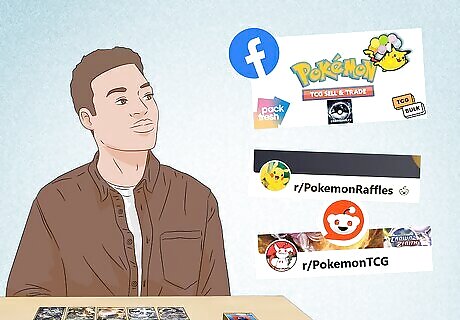 Enter card giveaways on social media. Pokémon card collectors and TCG players often host giveaways and raffles for free cards on Instagram, Twitch, YouTube, Twitter/X, and Discord. Additionally, players and collectors on Reddit and Facebook sometimes give away free cards, too. So, follow your favorite Pokémon influencers and online groups to look out for giveaways and raffles to enter. For instance, check out subreddits like r/PokemonRaffles and r/PokemonTCG for information about giveaways and raffles, or Facebook groups like Pokémon TCG Sell and Trade. Some major companies, like Dick’s Sporting Goods, occasionally host giveaways and raffles, too. Follow major Pokémon social media accounts for updates on upcoming giveaways and raffles. For instance, check out Pokémon.com for news (and follow their social media accounts).