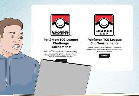 Participate in official Pokémon events and tournaments. Local Pokémon Leagues regularly host events and tournaments where you can win prizes, like free card packs. Simply search for a League near you on Pokémon.com to find upcoming events.