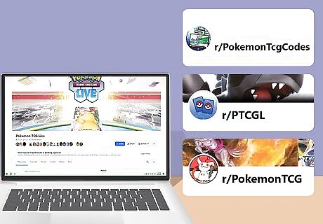 Get codes in online giveaways on social media. Pokémon TCG Live players regularly post their code cards online to gift people with free virtual cards. Simply follow TCG Live players on Instagram, Twitch, YouTube, Twitter/X, or Discord to stay on the lookout for code giveaways. You might see code giveaways on Reddit or Facebook, too. For instance, check out subreddits like r/PokemonTcgCodes, r/PTCGL, and r/PokemonTCG. Or, join a Facebook group like Pokemon TCG Live.