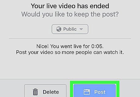 Tap Finish to end your broadcast. Though your live broadcast will end, your video will remain on Facebook, visible those you specified in your privacy settings. To download the video to your iPhone or iPad, slide the “Save the video to your camera roll” switch to the “On” (green) position.