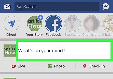 Tap What's on your mind?. It's in the text box at the top of your news fee.
