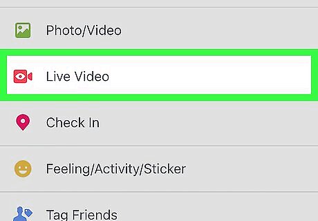 Tap Live. This option has a red video camera icon with an eyeball inside. You'll see it just beneath the “What's on your mind?” box. If it's your first time going live, Facebook may ask for access to your camera and microphone. Follow the on-screen instructions to allow this.