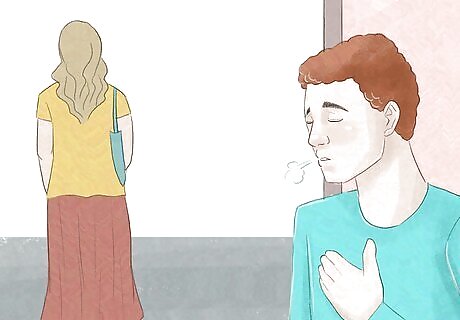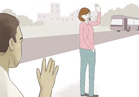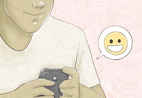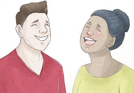 Smile warmly when you see her. Playing it cool doesn’t mean keeping a cool distance. On the contrary, whenever you see her, you should look her in the eye and give her a big smile. After all, you like her and she knows it, so why not show her that you’re happy to see her by flashing a big smile whenever you see her. Try not to be creepy by smiling for too long or staring at her.