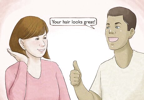 Flirt with her to see if she flirts back with you. As you get closer to her, try a little playful flirting to see if she’s at all interested in you. Try complimenting her appearance or even teasing her a little bit to engage with her. If you’re going to have a romantic relationship with her, it’s important to have romantic chemistry. Compliment her when she does something different with her appearance. If she gets a new haircut, say, “Your hair looks great!” If she giggles and flirts back or initiates her own flirting, it could be the start of a romantic relationship. If she becomes despondent or upset when you try to flirt with her, it may be a sign that it just isn’t meant to be. But you can only find out if you try!