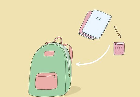 Carry the supplies you need for each class. Being prepared is really important when it comes to success. Pack your backpack every evening before school to make sure you have everything you need. This will help you stay on top of your studies. For instance, carry a notebook, pen or pencil, and calculator. Talk to your teacher if you're having trouble getting the supplies you need. They can help!