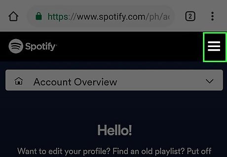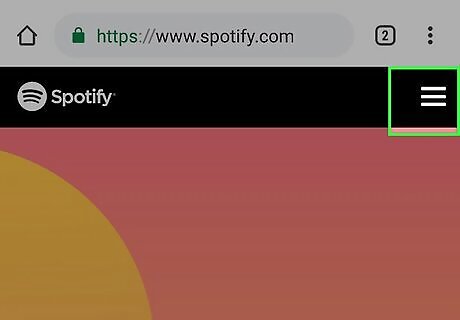 Tap ☰. The Menu icon is in the upper right corner of the Spotify web page and looks like three horizontal lines stacked atop one another.
