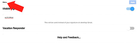 Select the Settings Android 7 Settings icon. A preferences menu will open that will have the options of Mobile Signature and Vacation Responder, along with Help and Feedback....