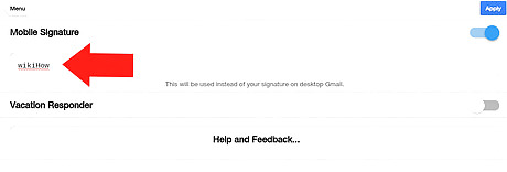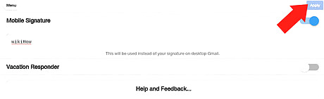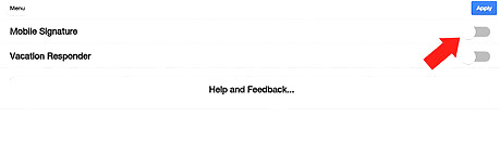 Tap the blue Apply button in the top right corner. This will save your mobile signature. If you do not click Apply and instead click Menu, your signature will not be saved.