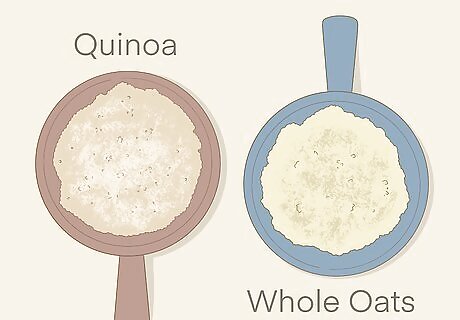 Throw in a cup (90 g) of whole oats or quinoa. Both of these grains have long been prized for the nutritional punch that they pack, as well as their nearly endless versatility. You can add either one to any smoothie in their dried or flaked form, or cook them first to soften them up and eliminate textural inconsistencies. In addition to containing respectable concentrations of protein, oats and quinoa also bring high levels of key vitamins and minerals like iron, magnesium, and potassium to the table.