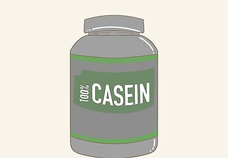 Whip up the perfect late-night snack with casein protein. Casein, the second of the 2 major milk proteins, is a slow-absorbing type of protein. When taken during the day, it will keep you feeling full longer, helping you resist cravings. When taken before bed, it will continue to supply your body with vital protein all night long. You’ll find powdered casein protein at most health food shops and supplement stores that also sell whey supplements. Consuming casein protein a few hours before bed can help prevent minor muscle breakdown, and may even increase muscular gains.
