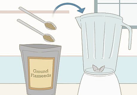 Incorporate 1–2 ounces (28–57 g) of whole or ground seeds. You might not think of seeds as being prime candidates for high-protein smoothie additives, but they are. And, like nuts, many types of seeds are naturally oily, so they blend well without leaving behind tiny shell fragments to ruin the texture of your smoothie. Flax, sunflower, sesame, and chia seeds all lend around 5 g of protein per 1 ounce (28 g) serving (about a handful), while hemp, squash, and pumpkin seeds all pack a whopping 8-10 g.Tip: When working with a particularly small or hard type of seed, like flax seeds, it may be easier to pulse them in a coffee grinder or food processor before adding them to the blender.