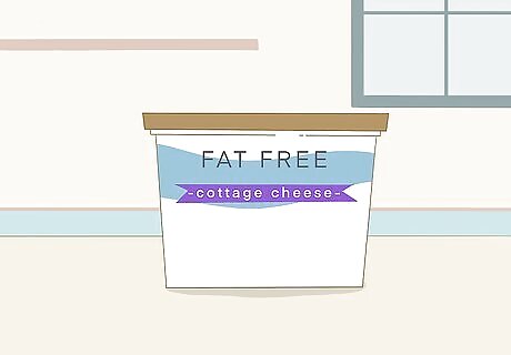 Grab some cottage cheese for a low-calorie smoothie. It’s possible to get the same consistency and nutritional benefits of milk or yogurt using this old dieting standby. Full-fat cottage cheese is a more complete protein source, with tons of health-promoting vitamins, but 2% and nonfat varieties are available if you’re watching your waistline. Full-fat, 2%, and nonfat cottage cheese all have as much protein as plain unflavored Greek yogurt, only with half the calories or less.