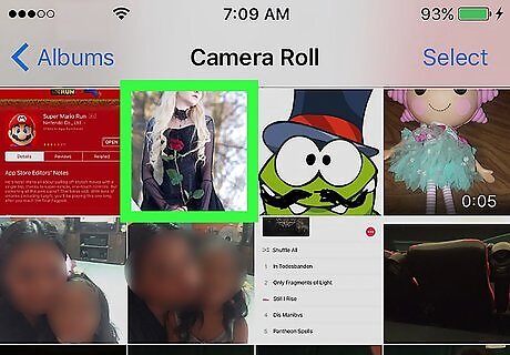 Select a photo. Once you locate the photo you want to edit, tap it to view it in full-screen mode.