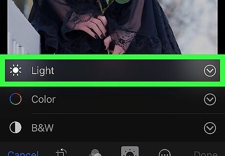 Tap the edit icon. It looks like three horizontal lines with sliders, and you’ll find it at the bottom of the screen.