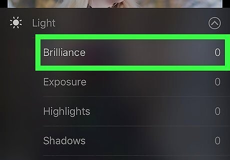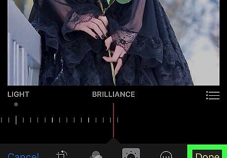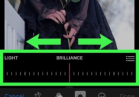 Use the slider to adjust the brilliance. Watch how the photo changes as you move the slider. Move the slider to the right to brighten dark areas, increase highlights, and raise the contrast all at once. Move the slider to the left to darken the photo’s brightest aspects and reduce its contrast.