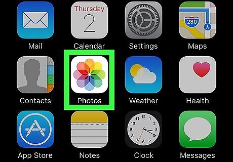 Open Photos. The app has a rainbow flower icon, and you’ll usually find it on your home screen.