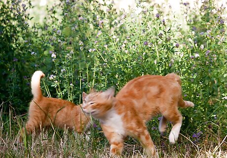 Introduce the cat to other pets carefully. If you have other pets like a dog, get him or her in a cage, and also get your cat in a cage and shut the doors. Put your cat and your other pet facing each other in their cages for a little while so they can get used to one another. Do one pet at a time if you have multiple pets.