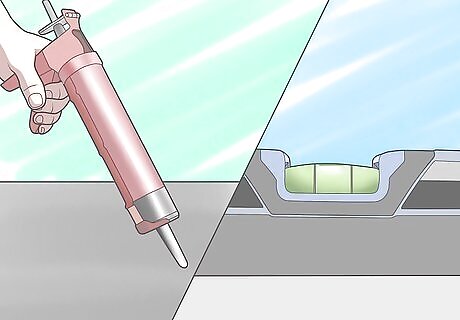 Seal and level the concrete. Once your repairs have dried, take the time to seal the concrete. Once the sealer has dried, apply the concrete patch or leveler and make sure that you have a flat surface with no defects. The floor must be level or your tiles and grout will form cracks. Cleaning the concrete should be done before adding a floor leveling compound. A sodium silicate or lithium silicate based sealer will help to waterproof and strengthen the concrete. Because silicates work below the surface, they won’t interfere with adhesion.