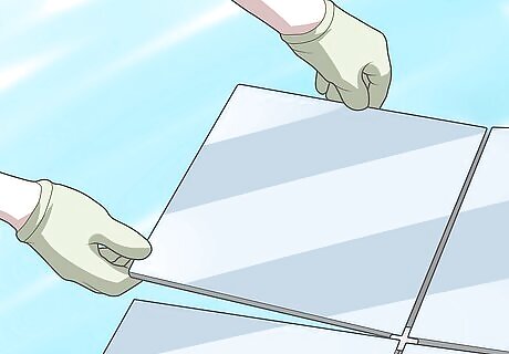 Mix the mortar. After you have decided where you want to begin, follow the instructions provided by the manufacturer and begin to mix the mortar. Don’t mix too much in advance, as it will begin to set up on you before you can use it. Using your grooved trowel, begin spreading the mortar over a small area. Never spread out more than what you can cover with three or four tiles at a time. Different kinds of tile require different types of mortar. Ask the sales representative who sells you the tile to help you choose the right one. A grooved trowel will be necessary to spread the mortar. They are available with different sized grooves, so be sure to read the package directions on the mortar to ensure that you buy the right size.