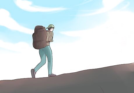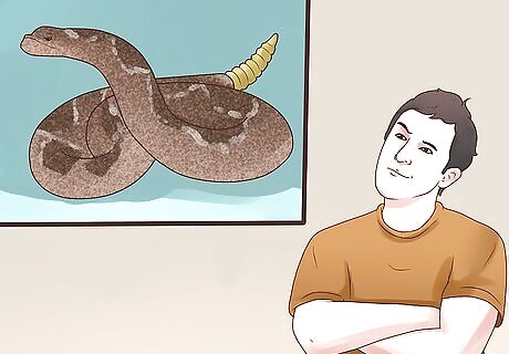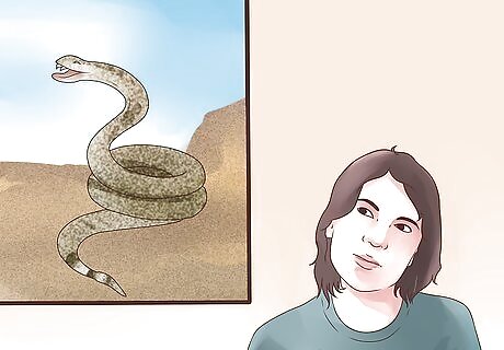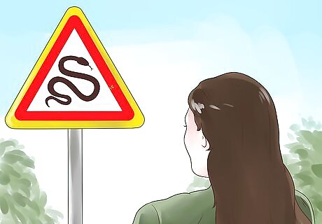 If you’re hiking, climbing, or camping, keep an eye out. Be aware of when and where you are most likely to encounter a rattlesnake. You are most likely to encounter rattlesnakes when you’re engaging in some kind of outdoor activity. Most rattlesnakes prefer hot environments, with some preferring desert climates but others, such as the Eastern Diamondback, prefer a moist climate. The majority live in the southern United States and Mexico, although some are found in Canada's Badlands desert region in Alberta and British Columbia around Hedley, Keremeos, and Osoyoos. Rattlesnakes like summer evenings the best, just as the sun is going down and when it has gone — they are most active nocturnally in the summertime. This just happens to coincide with the frailty of human eyesight kicking in as the sun goes down, so take care. Use a flashlight when walking about and wear good footwear. Rattlesnakes like warm days, period. Be it any season of the year, even winter, a rattlesnake can venture out in search of the warmth — suitable air temperature for rattlesnakes is around 70° and 90°F (21° to 32°C). Most rattlesnakes are not generally sitting about in the open — if they are in the open, they are moving through it much of the time. Rattlesnakes want to avoid contact with predators who can easily spot them in the open, including humans and large animals. As such, you will most likely encounter rattlesnakes around rocks, shrub and brush, or wherever there are nooks for them to hide among. However, on sunny days, you might find rattlesnakes warming themselves on warm rocks or asphalt.