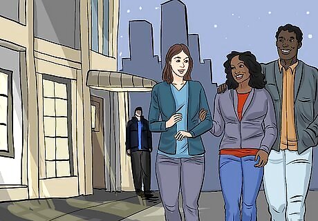 Travel in groups. Criminals are less likely to attack people in groups as there is strength in numbers. Walking around town alone, especially at night, makes you an easy target for criminals, because there is nobody there to help defend you or to serve as a witness. Protect yourself by asking a friend or family member to accompany you to your destination at night; if this is not an option, then consider taking a cab instead.