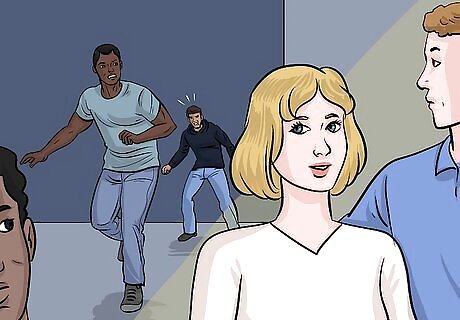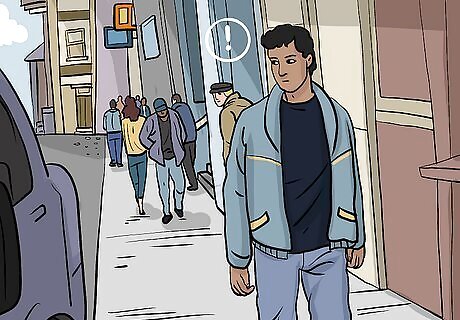 Seek safety. The first thing you should do if you think you are being followed is to determine whether you can quickly get out of the situation without having to confront the attacker. Look around to see if there are any groups of people around, and if so, walk or run in that direction. If there is nobody around, or if they are too far away, then you will need to take action against your attacker.