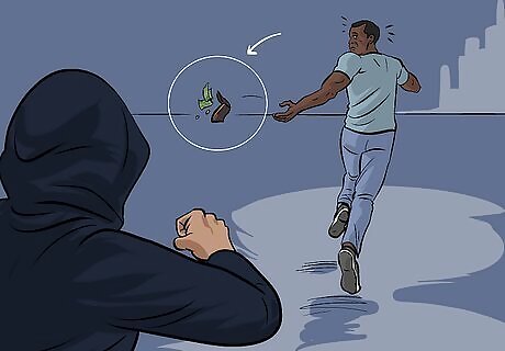 Put as much distance between the two of you as possible. Run as fast as you can toward safety. If the criminal begins to chase after you, then pull out your wallet and throw it on the ground as you run, making sure that he or she sees it being dropped. If it's your money that the person is after, they will likely stop chasing you and go pick up your wallet instead.