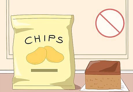 Eat dark chocolate, but avoid milk and white chocolate. Dark chocolate provides antioxidants, which helps your body stay healthy. However, milk and white chocolate do not have the same beneficial property. Since they're often high in sugar and contain caffeine, it's best to skip them. For example, you might eat 1 square of dark chocolate each day.