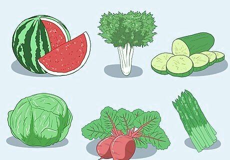 Eat natural diuretics, such as watermelon, celery, and cucumbers. Diuretics cause you to urinate more frequently and cleanse your system. Some foods, many of which contain a lot of water, naturally cleanse your system this way. Add more of them to your diet to help avoid UTIs. Other natural diuretics include cranberries, garlic, parsley, asparagus, cabbage, and beets.